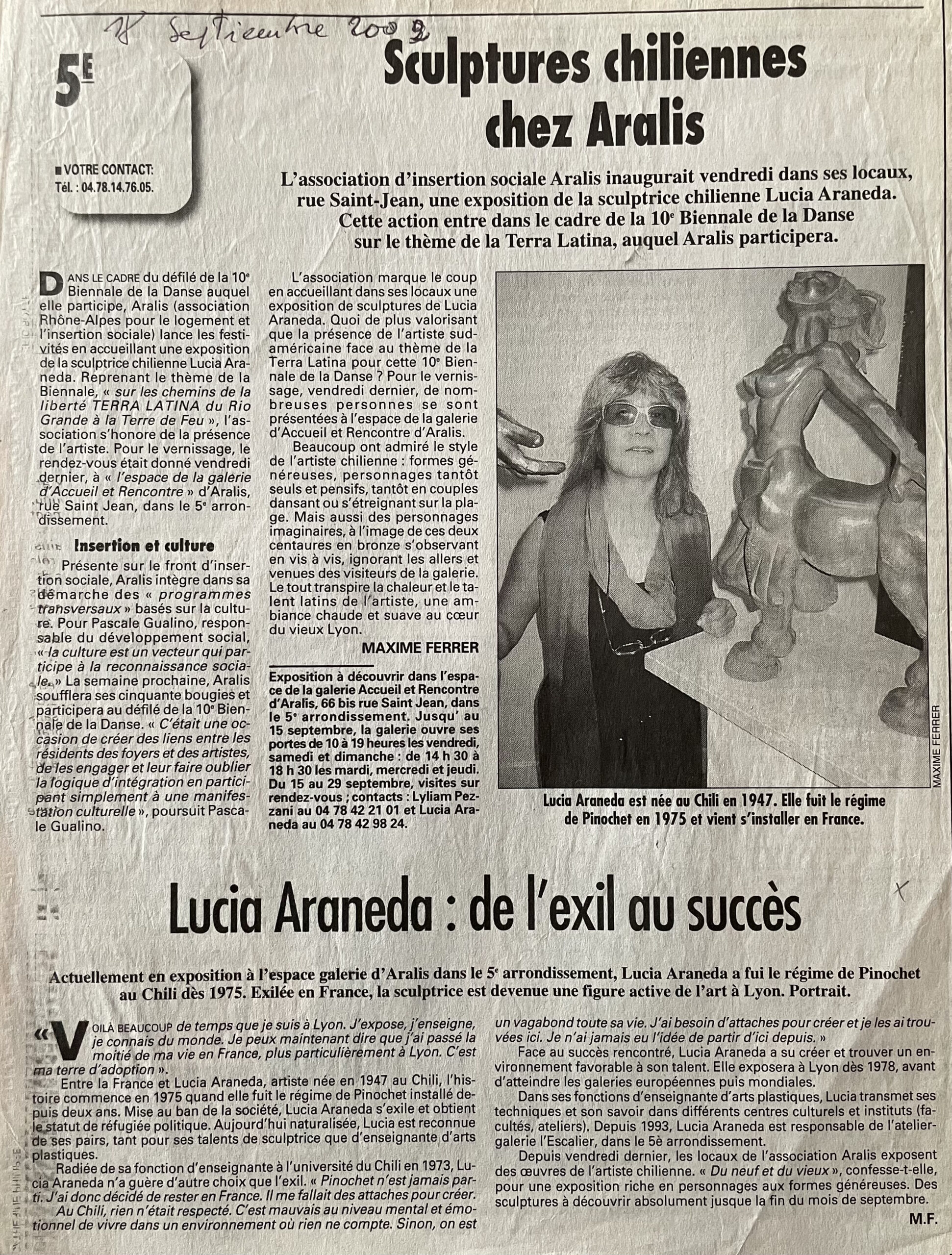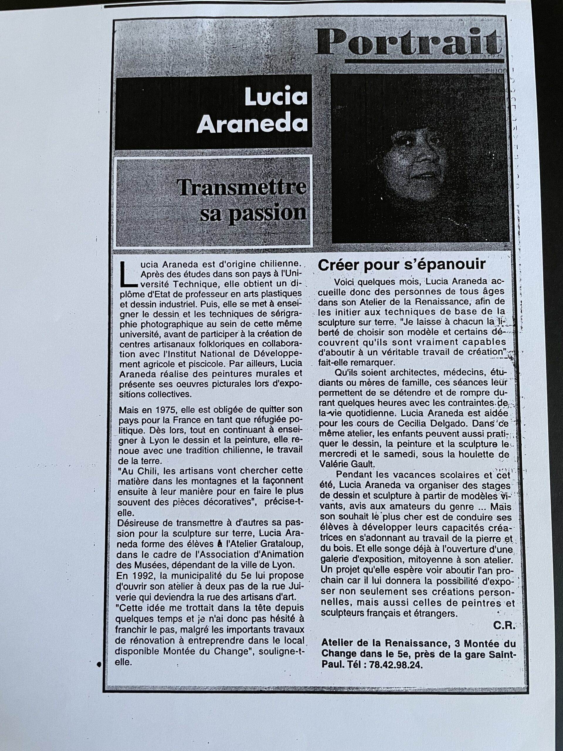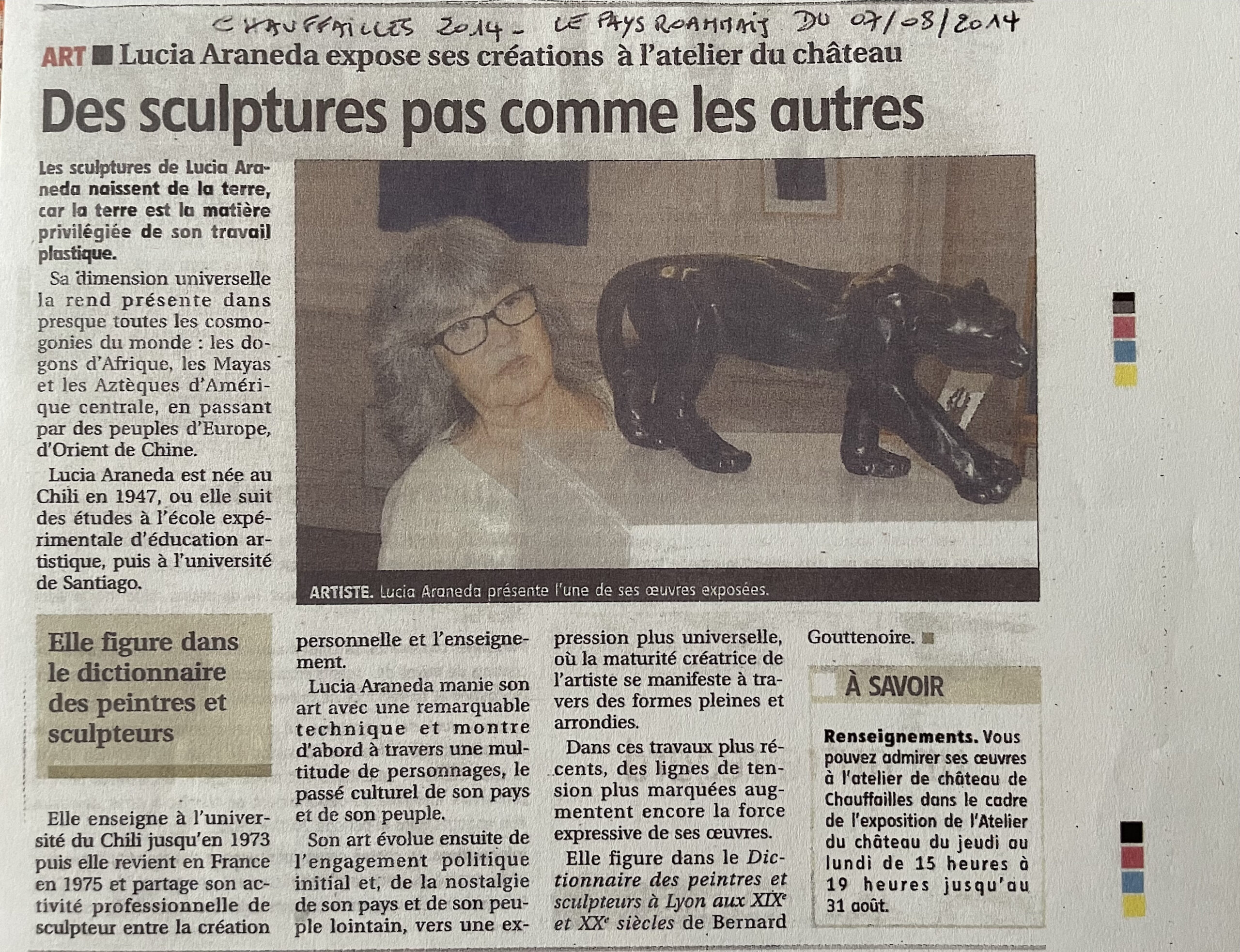 GalerÃa Acá podrá revisar parte de la obra de LucÃa Prensa, Premios y Exposiciones ArtÃculos de Prensa Premios y Reconocimientos Exposiciones Correo Electrónico lucia@araneda.cl