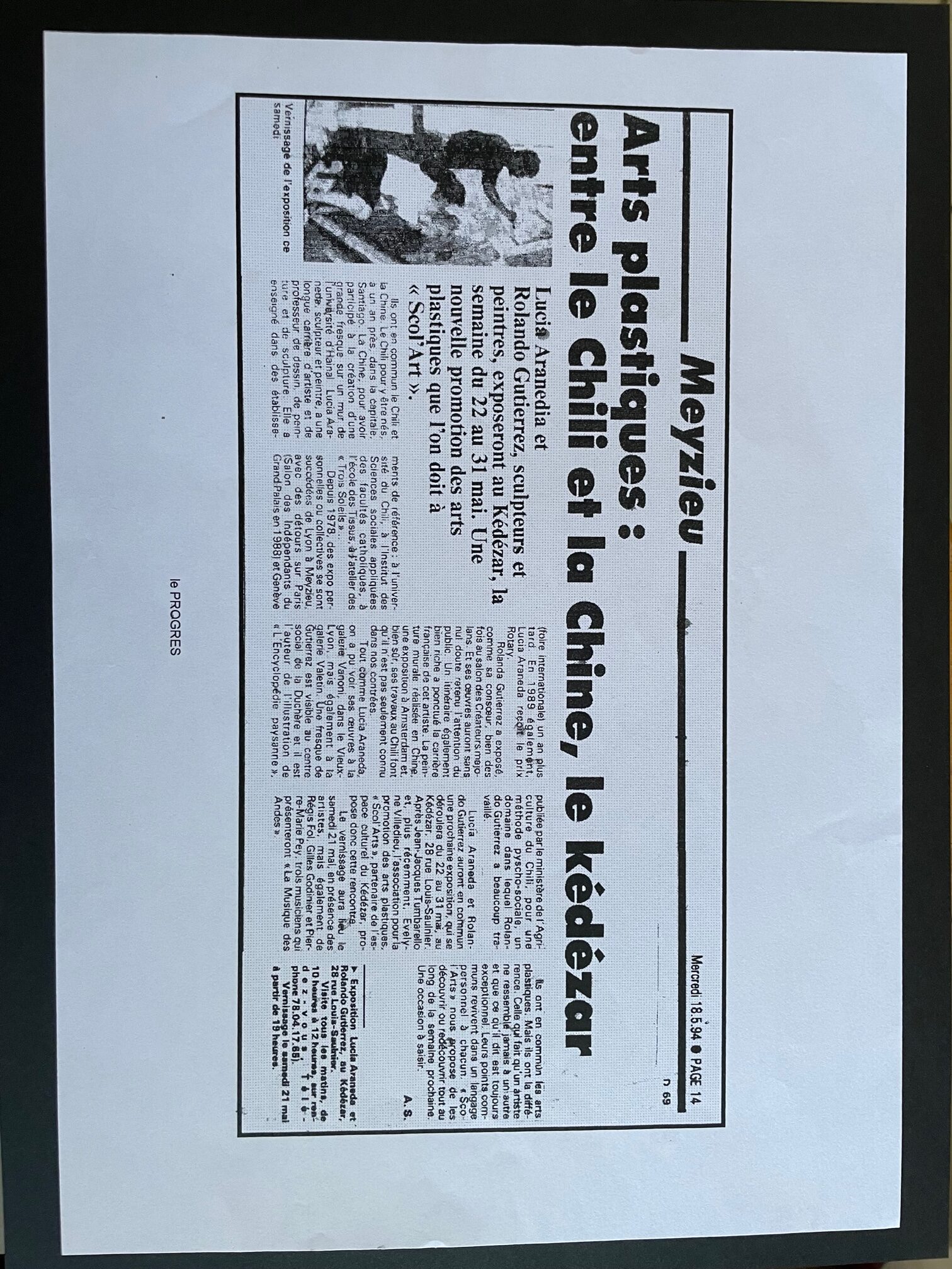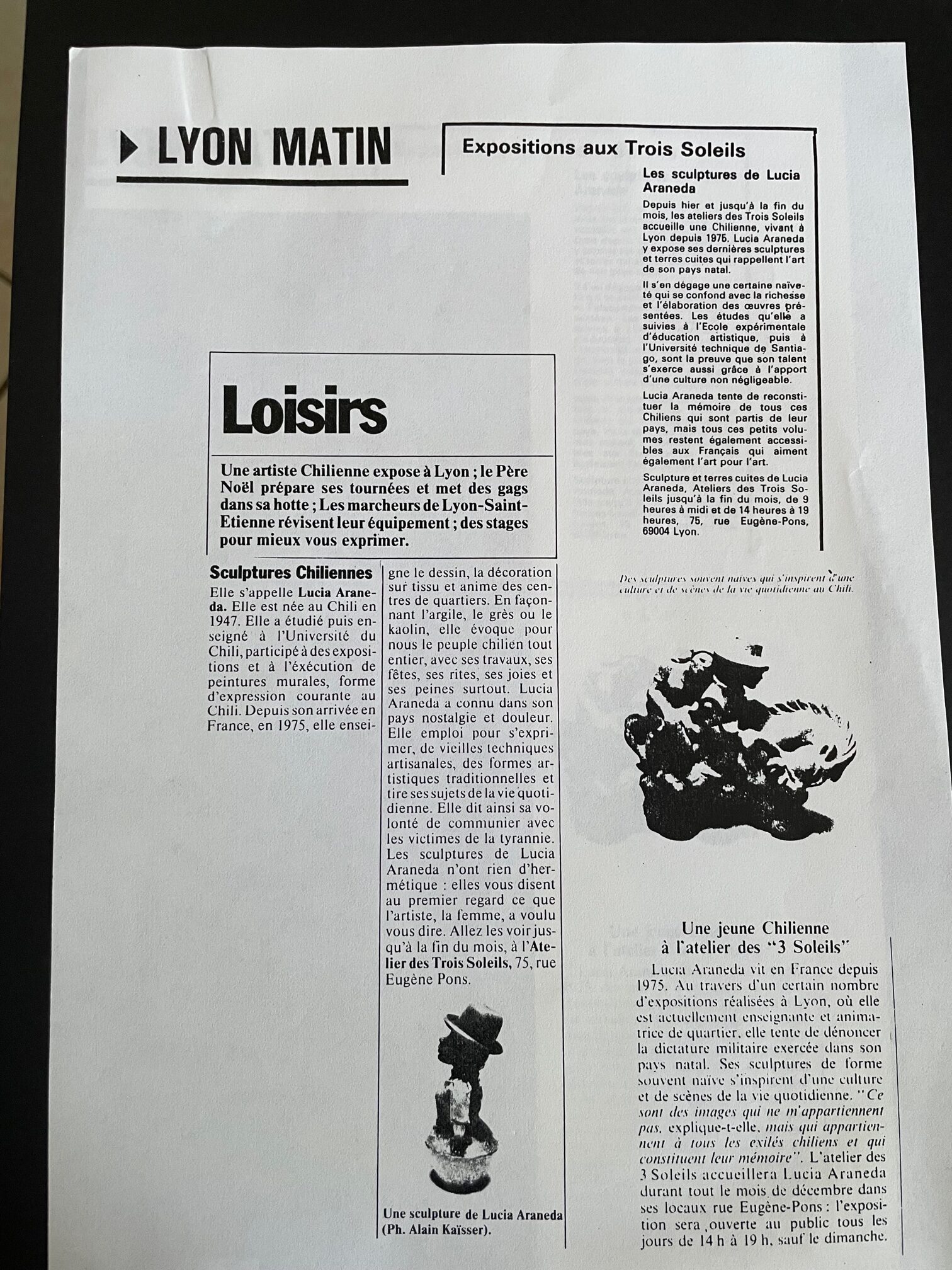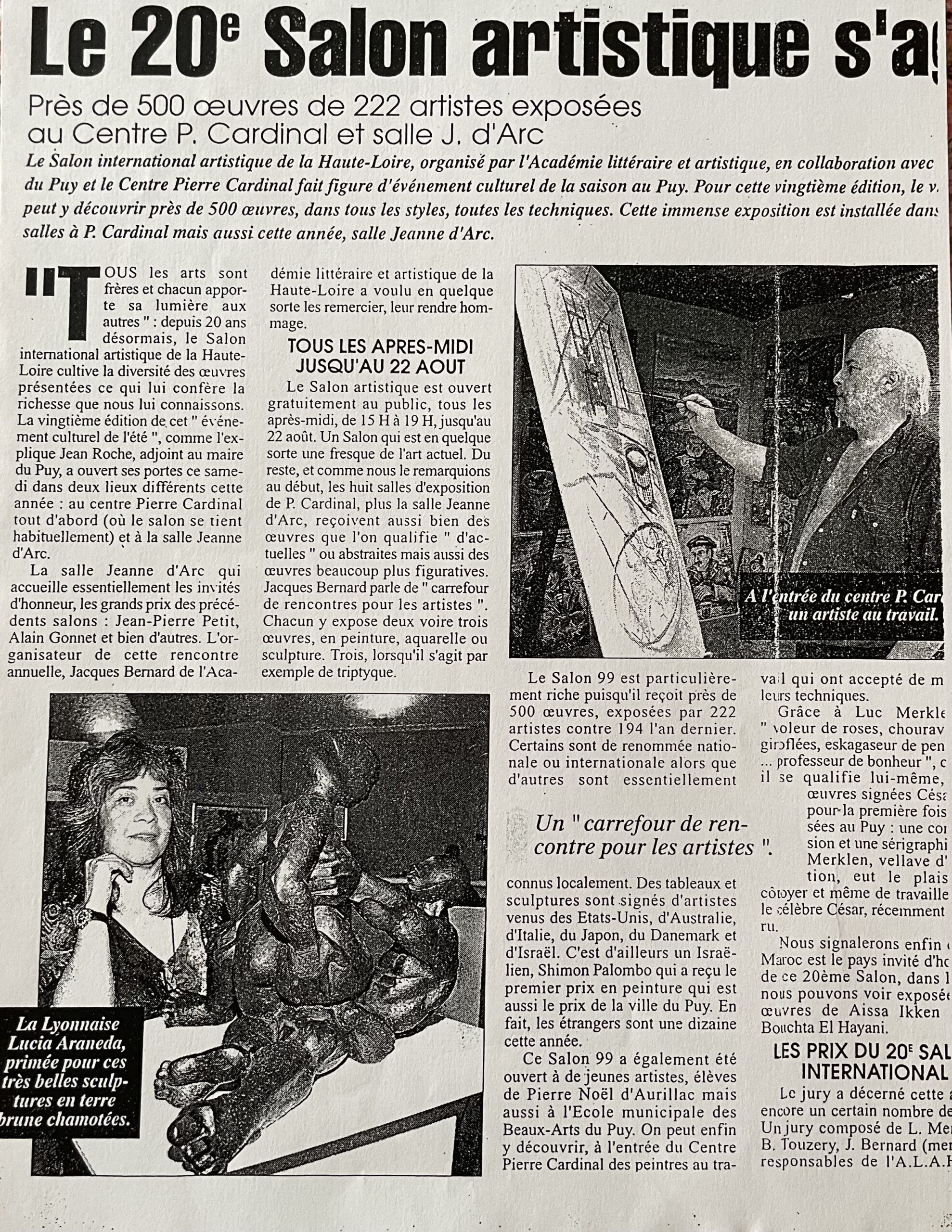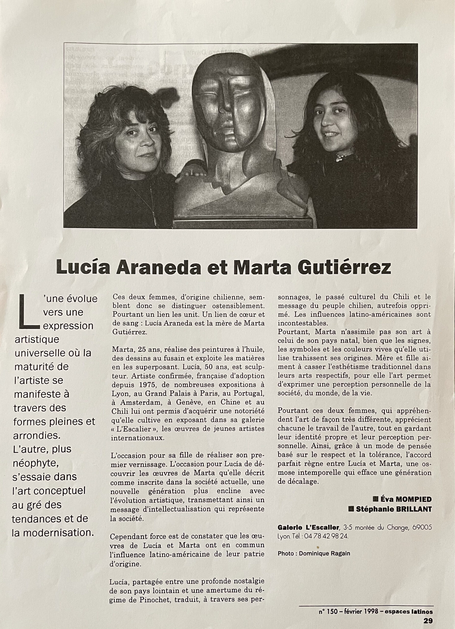 GalerÃa Acá podrá revisar parte de la obra de LucÃa Prensa, Premios y Exposiciones ArtÃculos de Prensa Premios y Reconocimientos Exposiciones Correo Electrónico lucia@araneda.cl